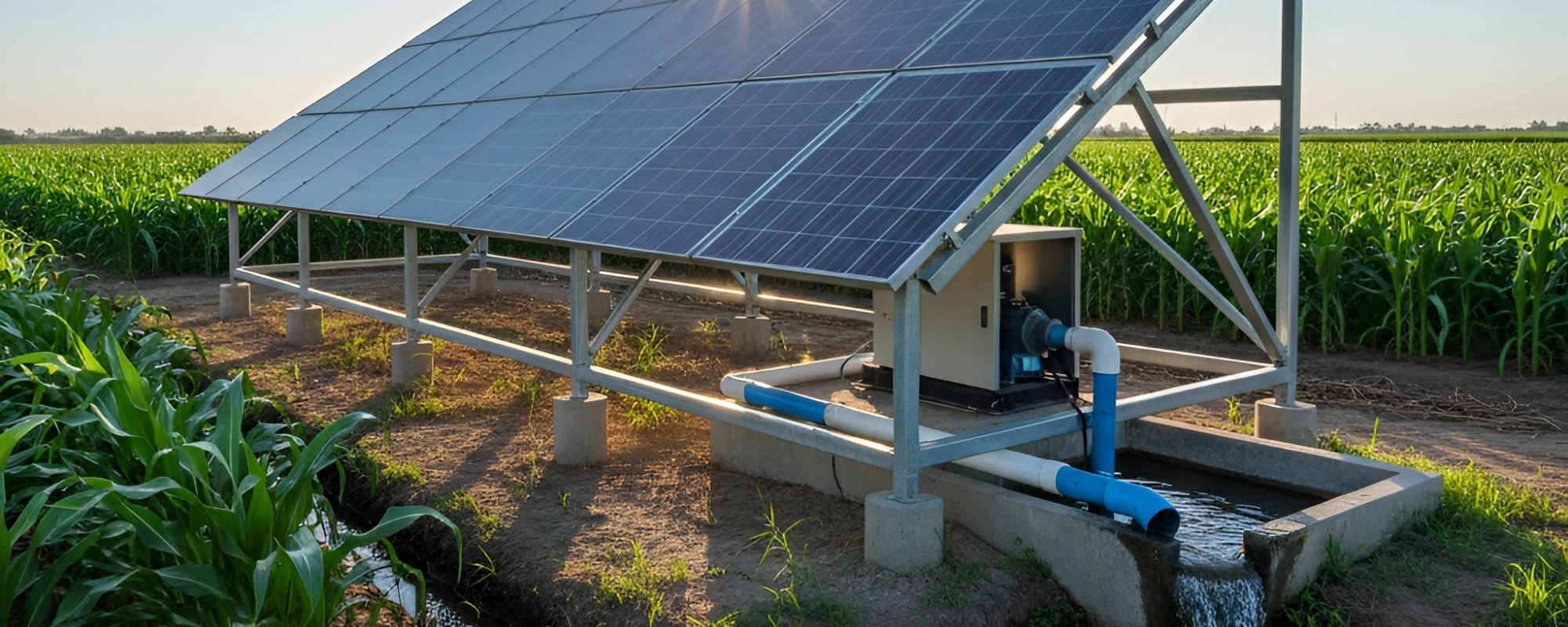 A Solar Water Pump is an eco-friendly and efficient solution designed to pump water using solar energy as its primary power source. The system uses high-efficiency photovoltaic (PV) panels to convert sunlight into electricity, which powers a motor-driven water pump through an advanced controller. It serves as a clean, cost-effective alternative to conventional electric pumps.