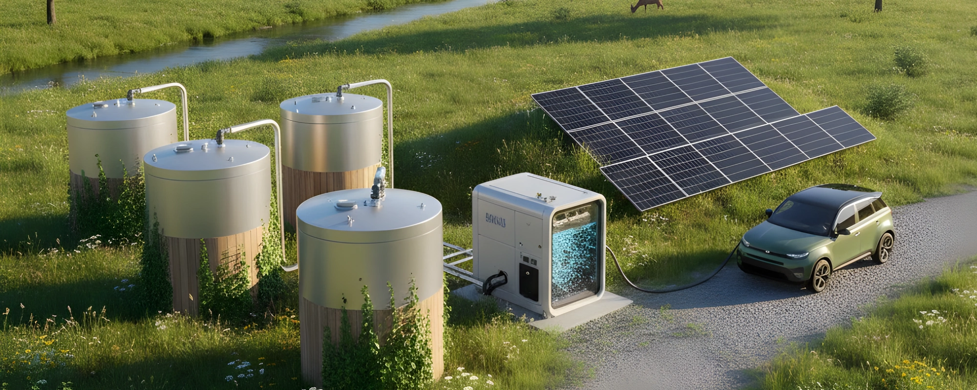 United Ecoenergy introduces advanced Green Hydrogen solutions powered entirely by renewable energy. Green Hydrogen is produced through a zero-emission electrolysis process that splits water into hydrogen and oxygen using solar or wind energy. This makes it one of the cleanest, most sustainable fuels available for industries, mobility, and power generation.